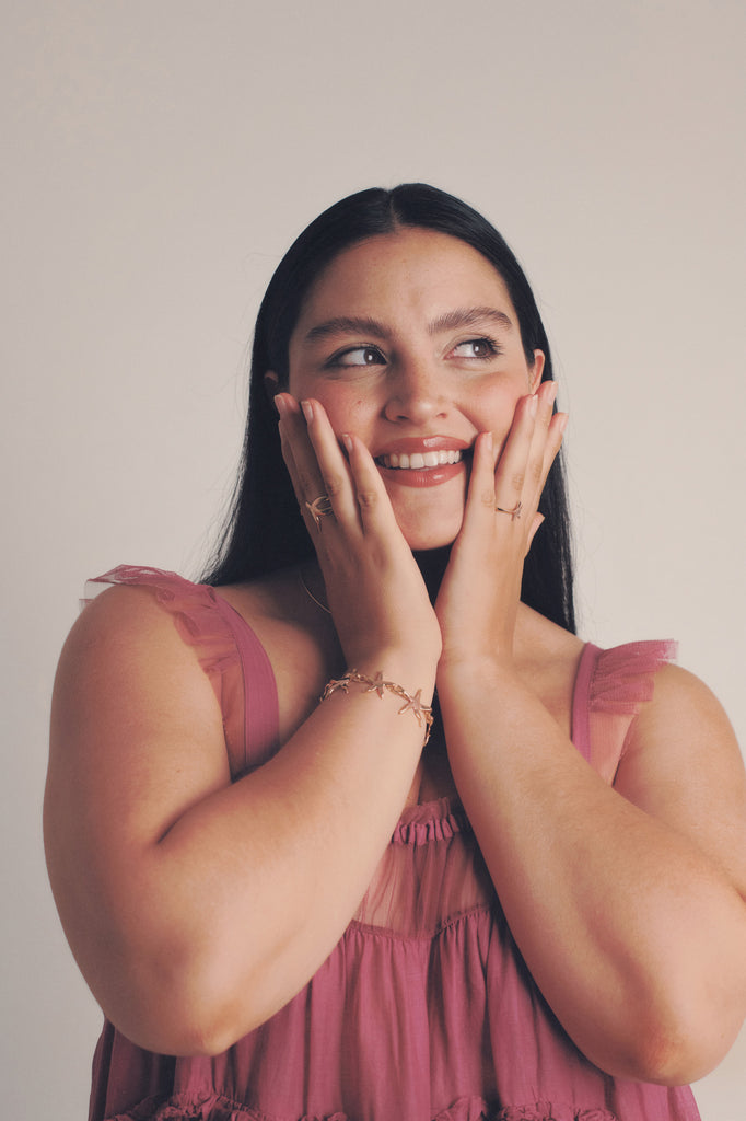 The Celeste Bracelet uses our dancing stars to connect around your wrist.