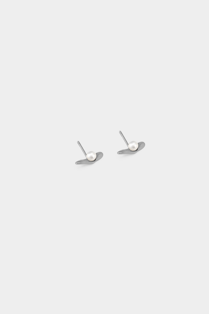 An organic stud with a partially obstructed pearl.