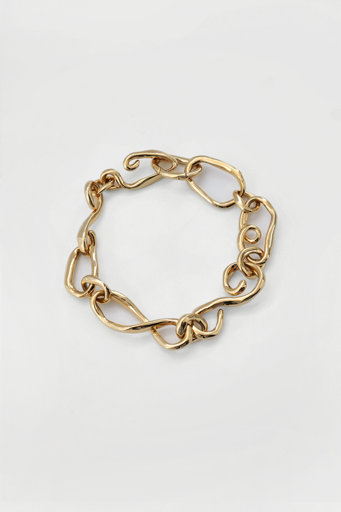 A chain bracelet made with hand-formed links that are each unique. Each link has a subtle organic texture and shape. Also available with a small drop charm.