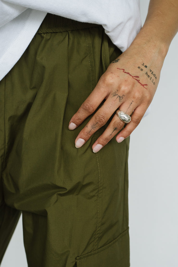 A hand carved dome ring with an intricate seaweed pattern to mimic fabric applique. This ring is based on the giant kelp forests that feed and shelter marine life along the pacific coast.