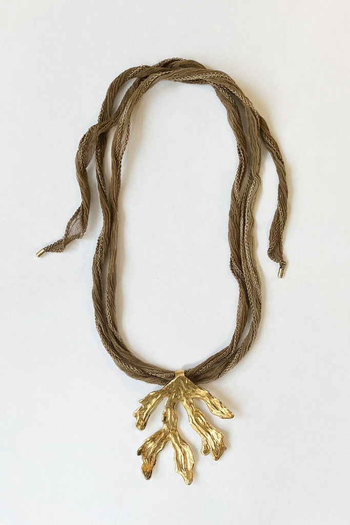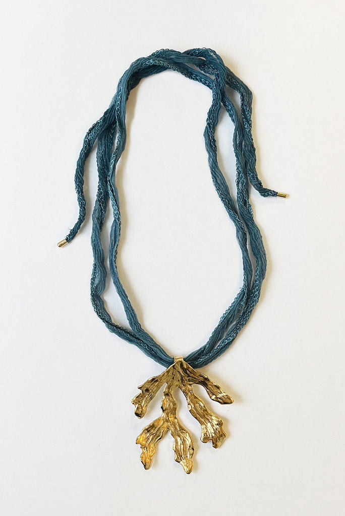 Oversized seaweed pendant on fairy silk.