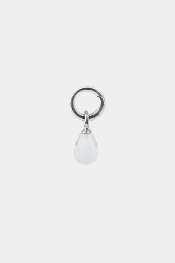 A translucent glass drop attached to a removable hinged link. The Small Drop Charm can be attached to the many styles with links, including (but not limited to) the Renata Hoops Set, Sabine Necklace and Bracelet, Maeva Necklace. You can remove the hinged link and wear the charm as a pendant. Also available in a larger size - Large Drop Charm.