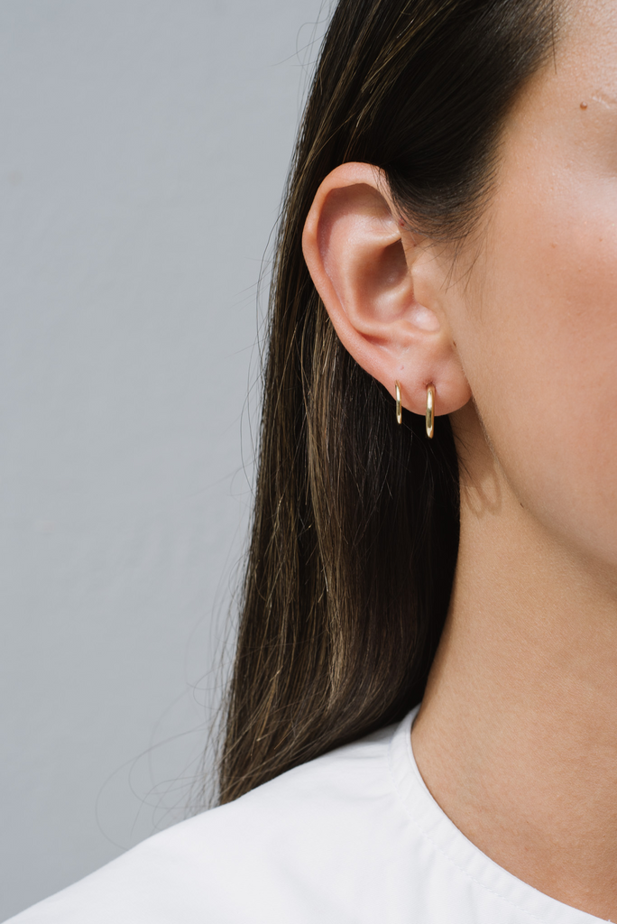 Two subtle hoops connected at the back to create the look of a second piercing.