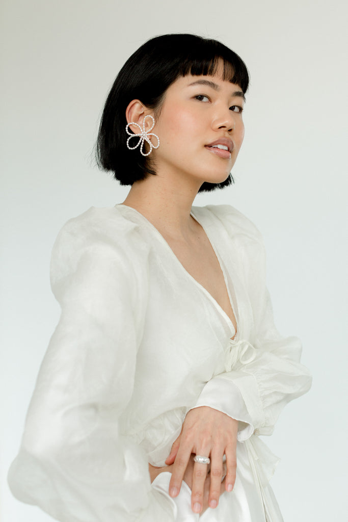 These face framing, hand beaded studs are a unique addition to your everyday or special occasions. Available in Lapis, Peridot, and White Pearl.