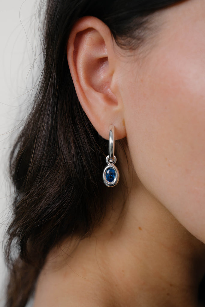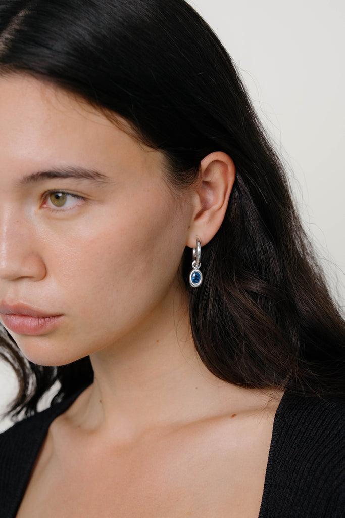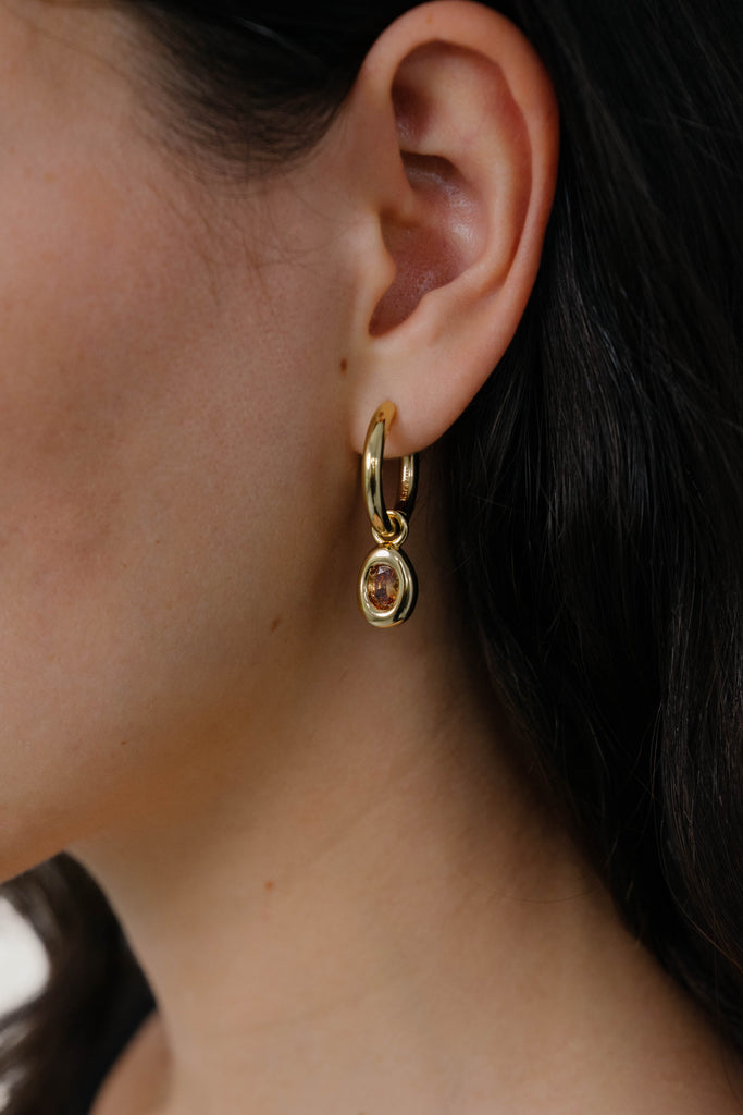 The Ami Hoops feature a removable charm that can be taken off, allowing you to wear them as sleek, plain hoops for a more minimal look. The charm can also be styled with the Aiya Neck Cuff, Sabine Necklace or a simple chain for added versatility.