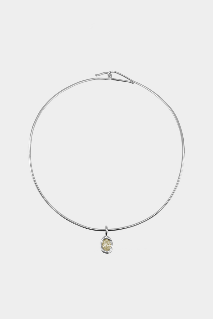 The Amina Necklace has a removable pendant that can be attached to our Sabine Necklace with a hinged link, or most other chains. The neck cuff can be worn alone, with the Ami Charm or another pendant.