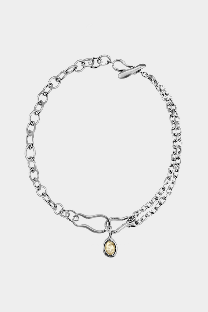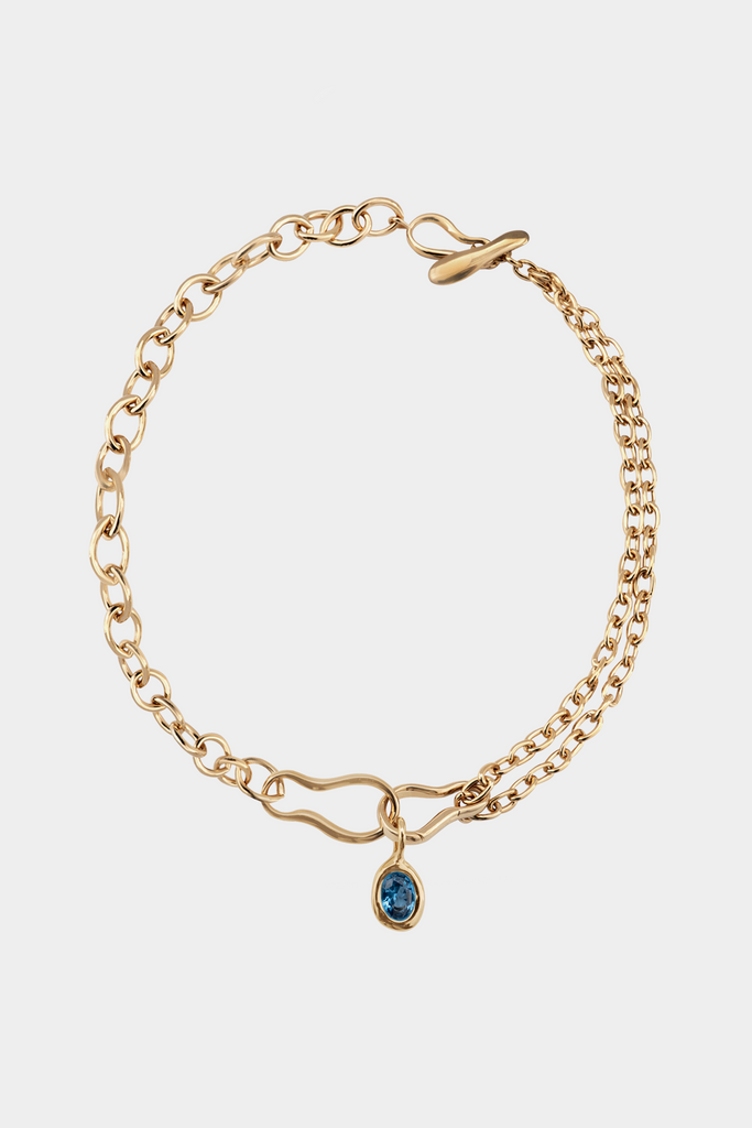 A two in one piece of jewellery that is a necklace or can be taken apart at the hinged link to make a bracelet. The charm is removable at the hinged link and can be added to the Aiya Neck Cuff, Sabine Necklace or a simple chain. A pendant or charm can also be attached, like our Initial Pendant, or Birthstone Pendant.
